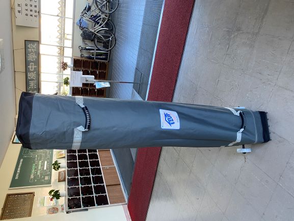 先日、三十三銀行様を通じて、地元の「早川設備工業株式会社」様から、SDGs私募債により、本校にテントを寄贈いただきました。SDGs私募債とは、私募債の発行に際し、発行手数料の一部(物品または金銭)を、SDGsの目標達成に向けて取組む組織・団体に寄贈するというものです。今回、早川設備工業株式会社様より、写真の「イージーアップテント」を寄贈いただきました。本校では、SDGsの視点からの環境学習等に取り組んでiいます。今回、寄贈いただきましたテントにつきましては、生徒による様々な活動や行事等で活用させていただきます。早川設備工業株式会社様には、心より感謝を申し上げます。