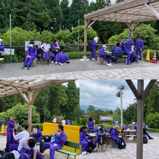 四日市スポーツランドでアスレチックにチャレンジ。いい汗かいたかな。余力のある人は2周目に挑戦です。ペース配分を考えてくださいね。水分補給をしっかりしています。