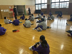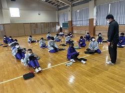武道場をのぞいてみました。1年生の体育の授業の一コマです。