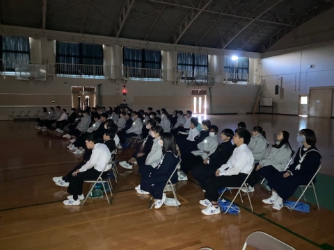 3限目。1年生が鑑賞しています。2年生は4限目です。