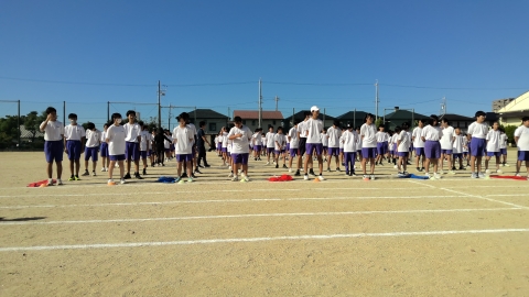 On Tuesday, September 30, we held a rehearsal for the Sports Festival during the first and second periods. The weather was clear and refreshing, with dry air. However, we carried out the activities while paying close attention to preventing heatstroke.