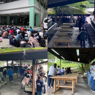 皆で協力して後片付けが終わりました。特にかまどの所は、自然の家の方から、本当にキレイにしていただきましたと、お褒めいただきました。みなさん、お疲れ様でした。今から最後の活動の箸作りの体験です。