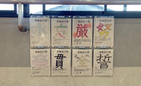1月28日(火)、3階ホールに掲示されている1年生の「今年の漢字」の一部を紹介します。