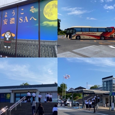 安濃サービスエリアでトイレ休憩をとり、いよいよ学校に向けて出発です。途中渋滞しているところがあるそうです。バスの中で寝ている人もいますが、皆、元気です。