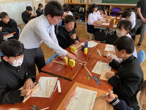 自分が制作した橋を制作します。次回は「ブリッジコンテスト」。どれだけの重さに耐えられるか、どこから壊れていくか実験します。