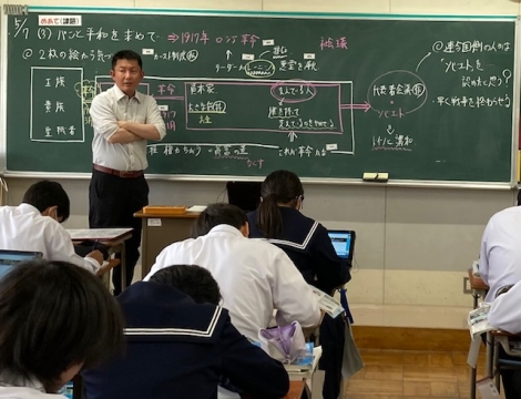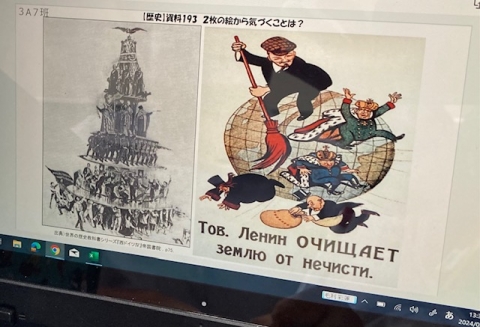 3年生の社会です。「パンと平和を求めて」→1917年ロシア革命について学んでいました。