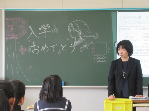 でも、心配はいりません。あなたのことを、先輩たちや、先生方が歓迎しています。そして、あなたの周りに座っている多くの友だちも、あなたと同様に、一緒に入学できてよかったと思っているはずです。あなたは今日から富洲原中学校の仲間です。安心して、中学校生活の第一歩を踏み出してください。