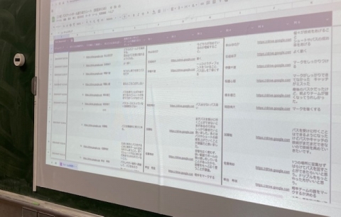 フォームに記入した各自の振り返りがスプレッドシートで全員に共有されています。