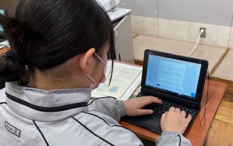 教室でタブレットに向かっていますが、これも体育の授業です。
