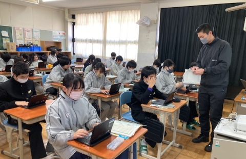 3月13日(水)2年生の体育科ではバスケットボールの振り返りの活動をしていました。