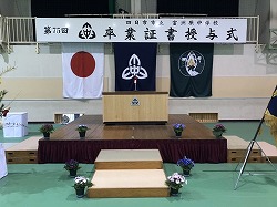 本日午後から1・2年生が卒業式に向けて会場設営と校舎の清掃を行ってくれました。とてもきれいになり感謝しています。本来ならお世話になった先輩方の晴れの舞台に参加し卒業を祝ってほしかったのですが、感染拡大防止の観点から出席者を限定することにしました。卒業式に参加できないせいもあってか、今までお世話になった3年制への感謝の気持ちを込めた作業をしてくれていました。