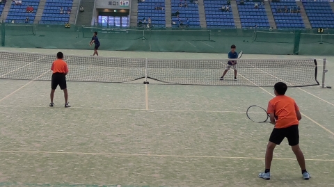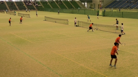 テニスの団体戦は四日市ドームで行われています。