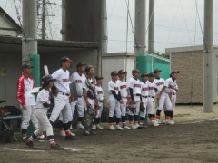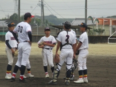 本日、朝日町民グラウンドで行われていた野球の新人大会ですが、富洲原中と羽津中の合同チームは、サンライズベイ四日市に1-9で惜敗しました。富洲原中学校の生徒もヒットを放つなど、序盤から塁上にランナーを出すものの、なかなかホームベースが遠いゲームでした。最終回、塁上にランナーをためて、1点をとりましたが、力及ばず敗退しました。生徒たちは、声を出し、最後まであきらめず、全力で戦っていました。次の大会に期待です。