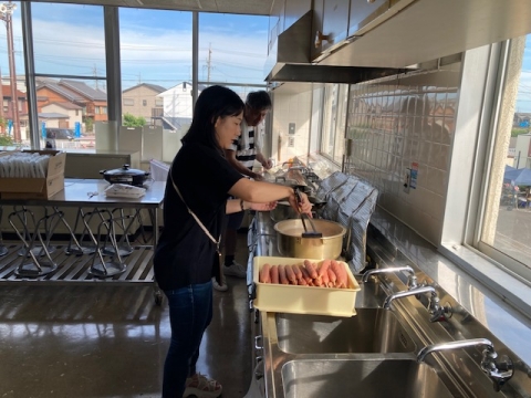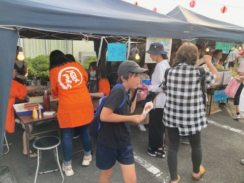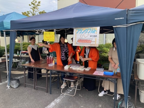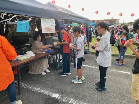7月27日(土)、夏まつり2024in富洲原が開催されています。富洲原中学校PTAのみなさまは「フランクフルト」を販売しています。1本100円です。