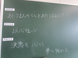 各学年や学級の目標が決まりました。形はいろいろですが、教室の後ろに掲示しています。目標を決めるときには、一人ひとりが意見を出し合い、どんなクラスや学年にしたいかを考えます。目標は考えて終わりではありません。その目標にむけて、みんながどんな風に活動・行動していくか楽しみです。