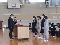 終業式の前に、表彰伝達を行いました。ポスターや標語・各作品展など、みんなの頑張りが評価されて、たくさんの生徒が表彰されました。作品等の一部は学校の玄関に飾り、みんなで見られるようにしています。