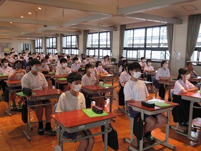 自然教室の活動の紹介と自然教室で行われているSDGsの取り組みの学習をしました。個人が『里山保全活動』と『伊勢型紙』のどちらかを選び、それぞれのSDGsとのつながりについて調べ学習を行いました。当日の自然教室で学びを深め、事後学習では個人新聞作りに生かしていく予定です。
