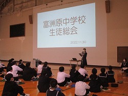 11月31日に生徒総会を行いました。生徒会を中心に、自分たちの制服の着方や身だしなみについてなどを振り返り、各クラスや学年でも話し合いを続けてきました。