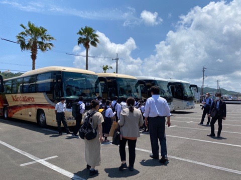 バスに集合して、鳥羽水族館を出発!最後の目的地、伊勢神宮、おかげ横丁へ。そこで見学や昼食、お土産を買ったりします。