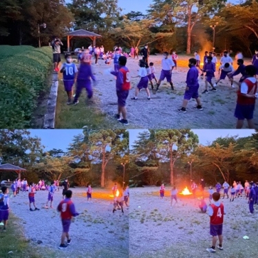 全員で、だるまさんが転んだをしてます。めちゃくちゃ盛り上がっています!山中に、だるまさんがこーろんだっ!という声が響きわたっています。いやー、すごく楽しい!