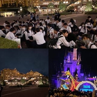 夜のディズニーランドは、エレクトリカルパレードも復活して、とても華やかでした。とてもすごい人で、出口までスムーズにたどりつけるか心配されましたが、集合時間までに、すべての班が集合することができました。皆はうれしそうにアトラクションの話やお土産の話をしていました。中には大きなぬいぐるみを抱えている子もいました。名残惜しいですが、楽しかったディズニーランドをあとにして、バスでホテルへ戻ります。