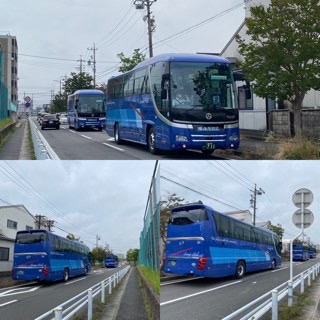 出発式も終わり、いよいよバスで出発です!まずはスポーツランドへ向けて。雨が少し心配ですが、アスレチックができますように!