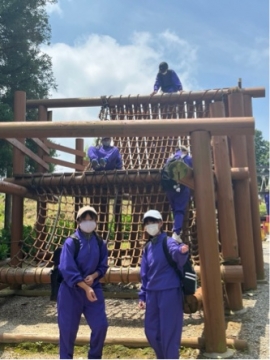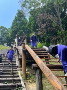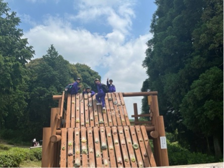 四日市スポーツランドです。美しい自然の中でアスレチック中。