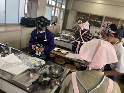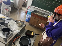1年生で調理実習が始まりました。リンゴの皮を剥いたり、きんぴらを炒めたりと仲間と楽しそうに料理を楽しんでいました。だし巻き卵を上手く巻けずに苦戦している生徒もいました。美味しいご飯が食べられるといいですね。