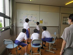 自然教室での学びも含め、SDGsについて、ひと班ずつテーマを決めて、発表会を行いました。目の前に、生徒だけでなく保護者の方にも聞いていただけたことで、ほどよい緊張感の中、堂々と説明をする姿を見ることができました。回数を重ねるごとに、うまくなっていったように思います。これは、1年生の取り組みの途中経過です。これからさらなる進化を遂げていくことでしょう。