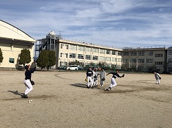 先週、代表生徒が高校の先生から基礎を含めた練習メニューを教えてもらい、その内容をチームに還元する練習を行いました。いくつかのグループに分かれて、生徒同士が教え合い・学び合い練習を行っていました。内野、外野、走塁、打撃と様々な練習メニューを楽しそうに取り組んでいました。