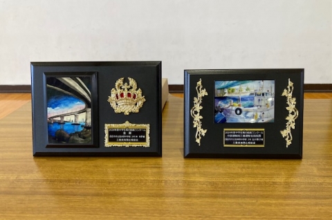 金賞と中部運輸局三重運輸支局長賞の盾。絵が入っているのがうれしいですね。