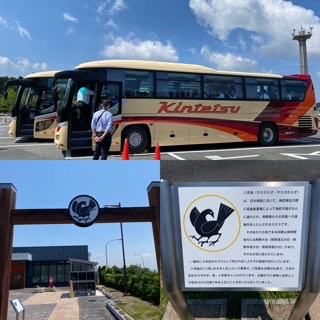 紀の川サービスエリアでトイレ休憩です。梅干、梅ジュース作りグループが先に到着し、少し後にみかんジャム作りグループが到着しました。ここから、昼食場所の松本屋までさらに行きます。
