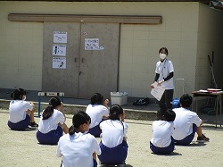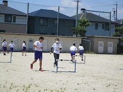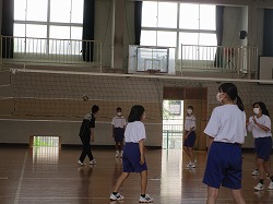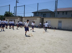 教育実習生とともに、体育の授業を行っています。2年生はバレーボール、3年生は陸上(ハードル)を練習しました。ハードルは、最初ミニハードルを使って、歩数の確認をしてから、実際に跳んでみました。歩数を三歩で合わせるのに苦戦していました。