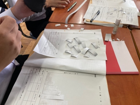 10月31日(木)、3年生理科、運動と力の授業です。前回の実験の記録を整理しています。