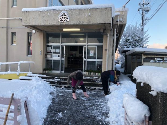 朝から職員は雪かきで安全対策です。