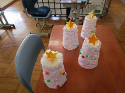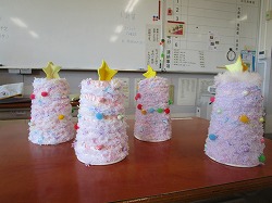 EF組の活動の中で、ツリーの制作をしました。一人ひとり飾りつけを考えたオリジナルです。てっぺんの星も角度によって色が違います。ミニツリーですが、机や窓際に飾ると気分が華やかになりそうです。