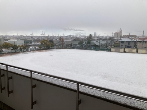 1月10日(金)朝から富洲原にも雪が降っています。場所によっては道路にも雪が積もり始めていました。