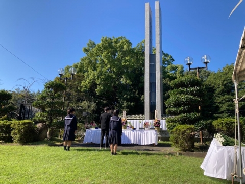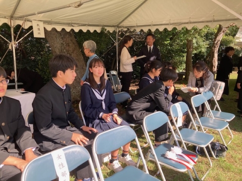 11月3日(日)、本校の生徒を代表し3年生の6名が、第58回四日市市戦没者合同追悼式において平和の誓いを行いました。この6名はSDGs Talksにおいて、平和をテーマに研究しています。