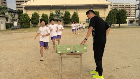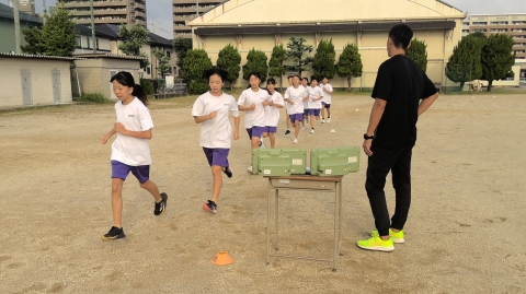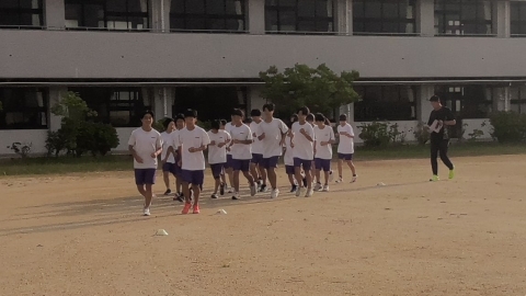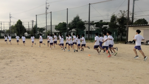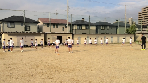 10月7日(火)朝の駅伝練習の様子です。今朝は男子12名、女子10名が参加し、運動場での練習を行っています。