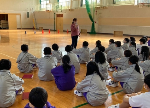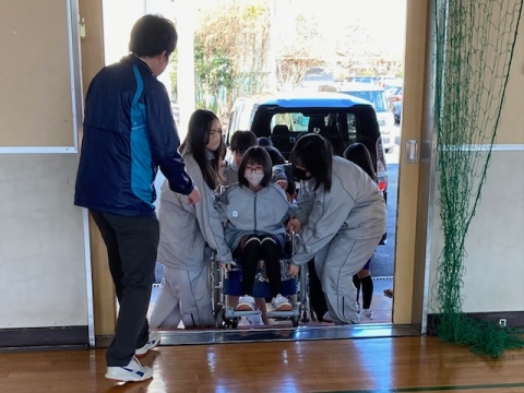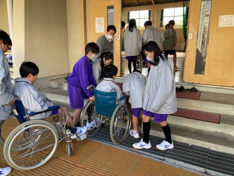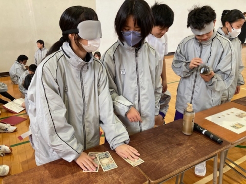 1月20日(月)午後、1年生がアイマスクと車いすの体験をしています。