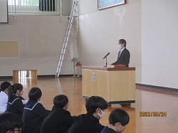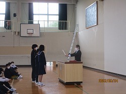 校長先生からは、がんばったこと、もう少しがんばればよかったと思うことなど、この1年間を振り返り、先輩に成準備をしてほしいというお話がありました。