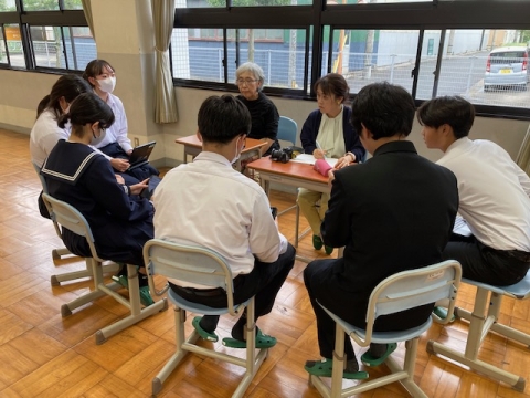 「四日市空襲を語り継ぐ」という動画を制作された出口敦子さんにご来校いただいています。YOU Yokkaichiの取材の方が同行されています。