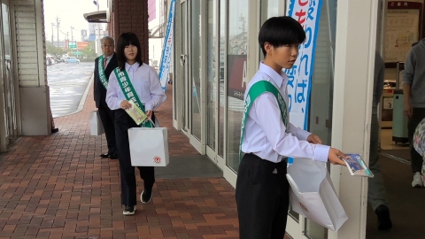 今日は啓発物品の配付と懸垂幕の掲示を行っています。