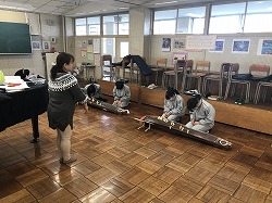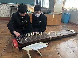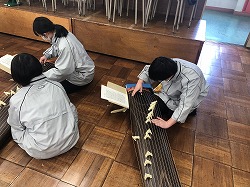 音楽の時間で、箏の演奏を行いました。楽譜を見ながらペアで協力して、「さくら さくら」の旋律を奏でていました。職員室にも心地よい音色が・・・