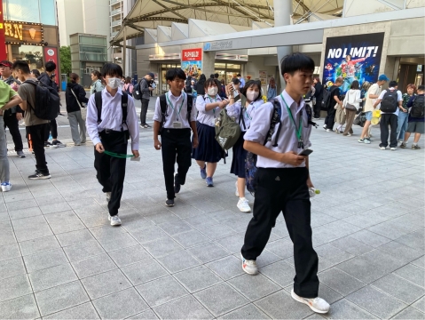夕食はユニバーサルスタジオジャパン(USJ)につながるユニバーサルウォーク(UW)で班ごとに食べます。