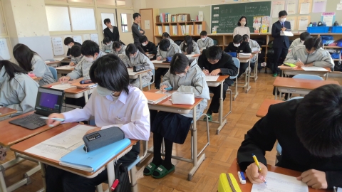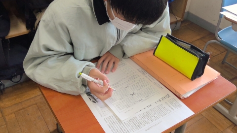 En el curso de Estudios Sociales (área de Educación Cívica) de los estudiantes de tercer grado, se está realizando una clase para aprender alfabetización mediática a través de artículos periodísticos. Para esta lección hemos invitado al profesor Yuta Nozaki, de la Universidad de Educación de Hokkaido, Campus Hakodate, y la clase se lleva a cabo en colaboración con el periódico Hokkaido Shimbun.