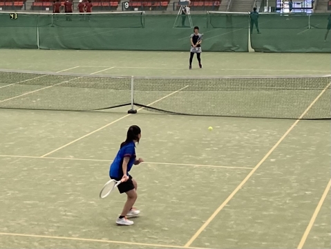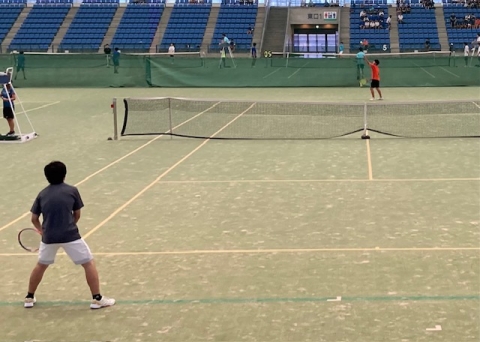 テニス男子団体戦。シングルス。富洲原中は奥です。