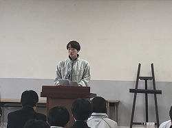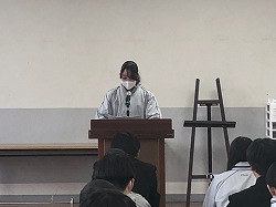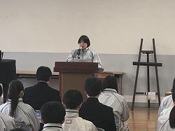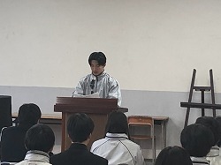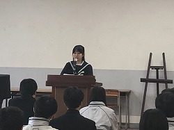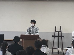 今日は先週のグループ発表会の代表者達による学年発表会が行われました。グループ発表会よりも緊張した様子もありましたが、一人一人熱い思いを述べていました。3月の卒業式には、この中の生徒が学年代表として答辞を行います。