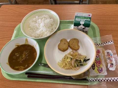 4月10日(木)、給食が始まりました。最初に登場するのは人気メニュー「ポークカレー」です。