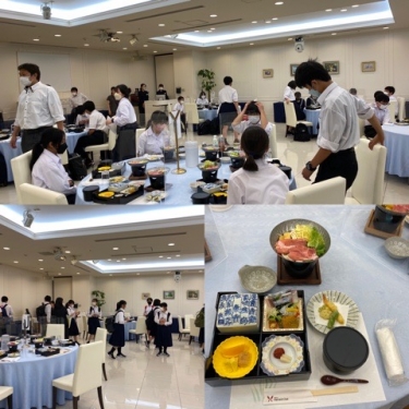 夕食前に、健康観察をし、準備万端です。メニューは、お刺身、天ぷら、紀州梅豚の一人鍋が付いた和食中心のご馳走です!食べるの楽しみですね!